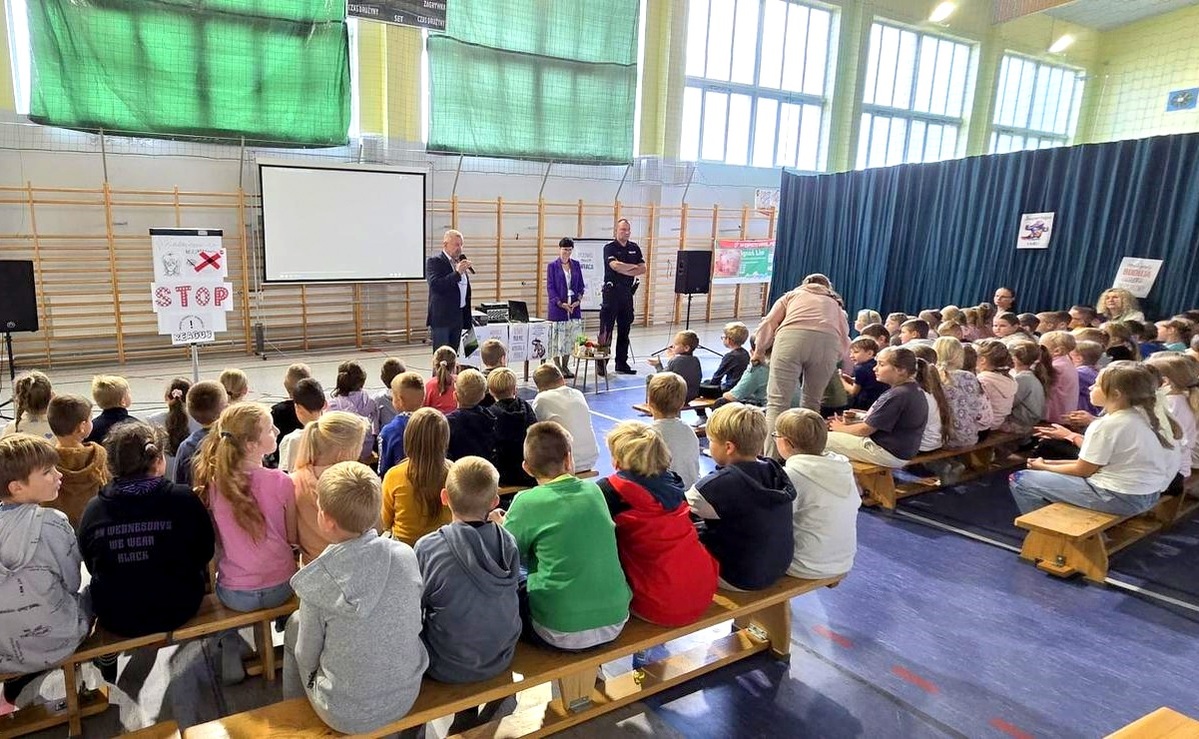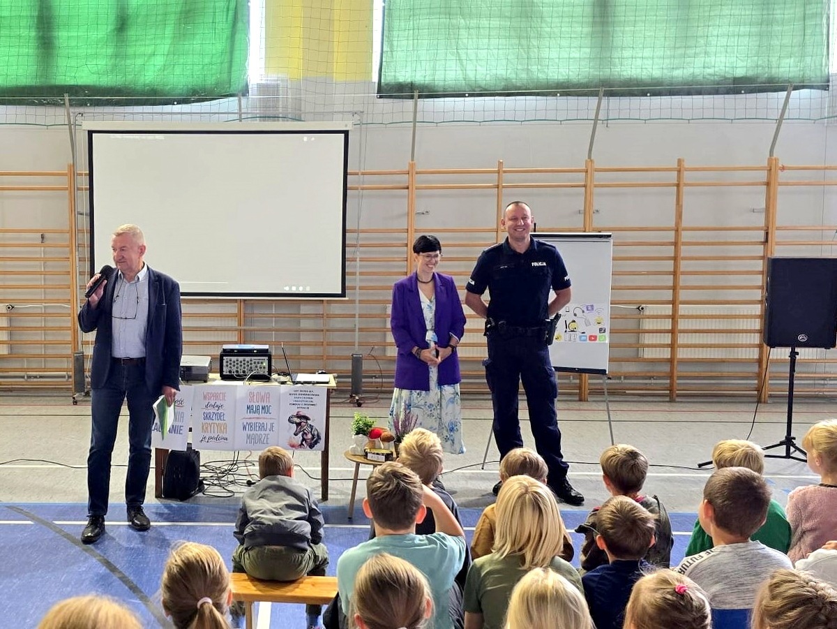 Asp. szt. Adam Wochna Kierownik Posterunku Policji w Cekcynie opowiedział o tym, czym jest przemoc rówieśnicza, jakie mogą być jej formy i skutki, a także jak ważna jest reakcja świadków. Uczniowie dowiedzieli się, że przemoc nie dotyczy wyłącznie agresji fizycznej. To także cyberprzemoc lub wyśmiewanie się z kogoś. Funkcjonariusz zwrócił uwagę na to, że nie wolno pozostawać obojętnym wobec krzywdy innego człowieka.