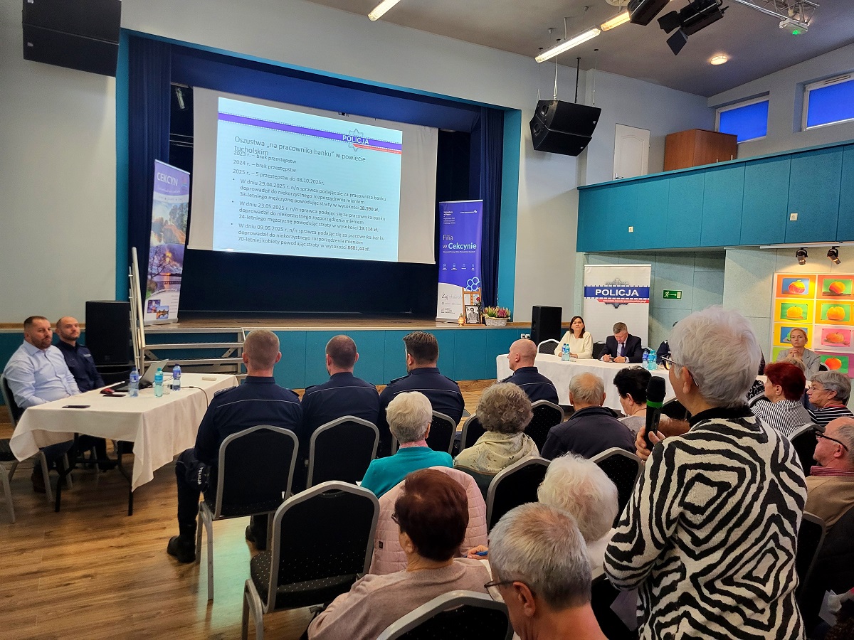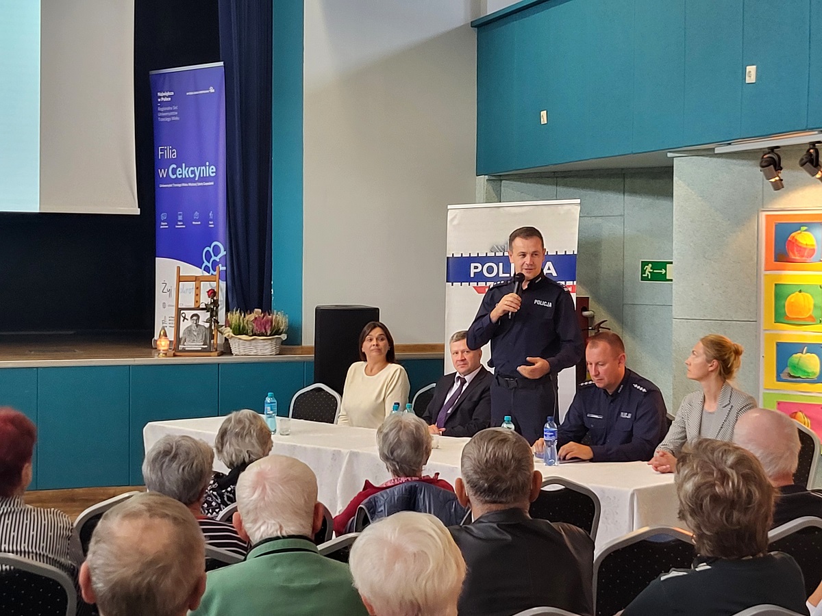 Spotkanie rozpoczął Komendant Powiatowy Policji w Tucholi insp. Paweł Zawada oraz Wójt Gminy Cekcyn Pan Jacek Brygman, którzy przywitali mieszkańców. Szef miejscowych funkcjonariuszy podkreślał, że inicjatywa debat społecznych została stworzona po to, by poznać oczekiwania lokalnego społeczeństwa oraz wysłuchać ich spostrzeżeń. W wydarzeniu uczestniczyła również Przewodnicząca Rady Powiatu Tucholskiego Pani Ilona Lesikowska. Zaproszeni goście podkreślali, że tego typu inicjatywy podejmowane przez Policję są potrzebne, gdyż podnoszą świadomość mieszkańców w zakresie zapobiegania i unikania działań oszustów.
