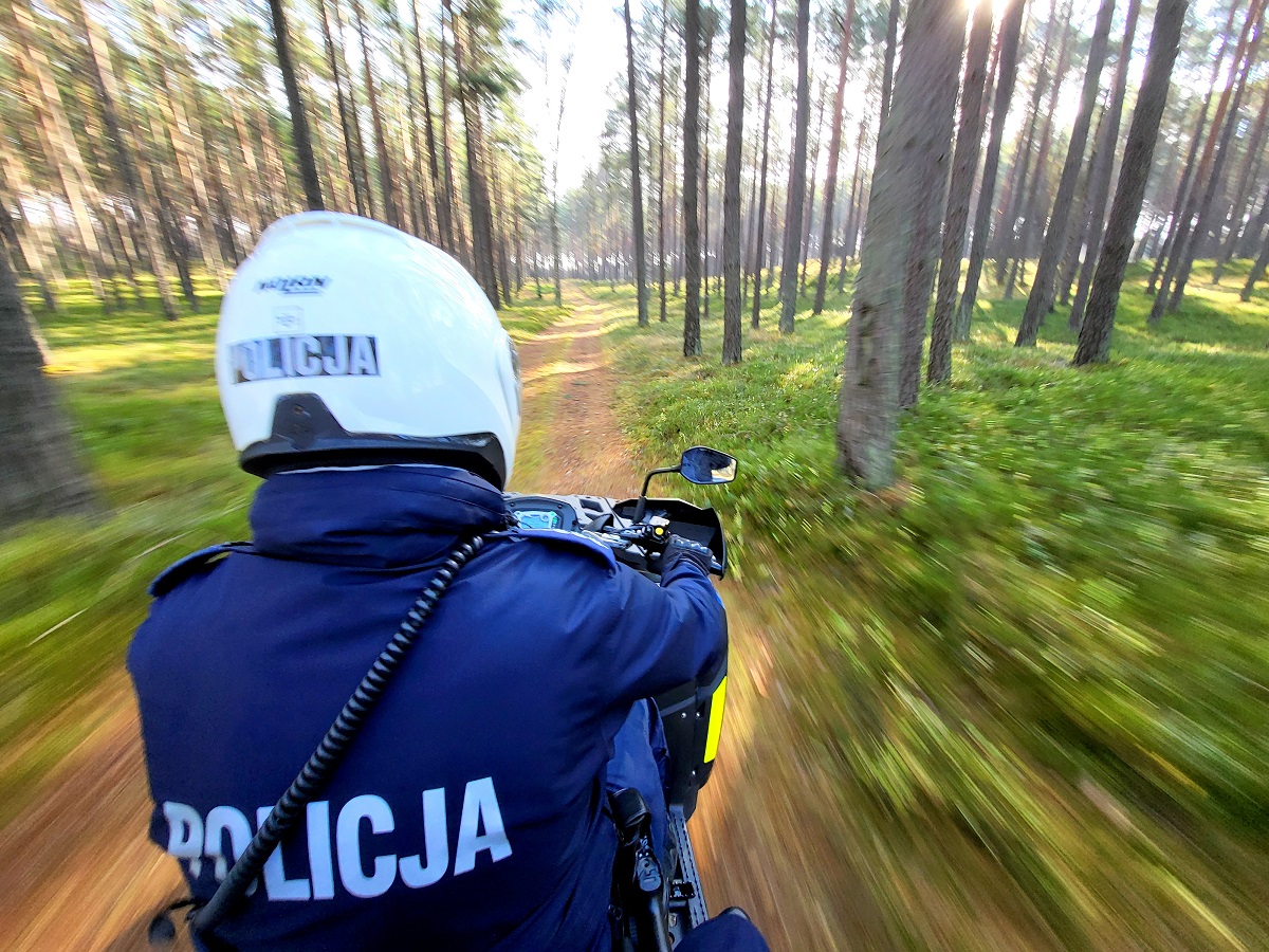 Na stanowisko kierowania tucholskiej jednostki wpłynęło zgłoszenie o mężczyźnie, który w aucie przewozi narkotyki. Policyjny patrol zauważył wskazany samochód w rejonie miejscowości Rzepiczna. Kierowca na widok radiowozu skręca w drogę leśną i próbuje uciec. Po przejechaniu kilku kilometrów porzuca samochód. Na miejsce zostają skierowane dodatkowe patrole oraz strażnicy leśni. Przybywa również policyjny pies, quad i służbowy dron. Funkcjonariusze wskazują, w którym kierunku udał się uciekinier. Policyjny pies łapie trop i podąża za śladami zbiega. Teren poszukiwań jest bardzo trudny i gęsto zalesiony. Mundurowi wzbijają w powietrze bezzałogowy statek powietrzny, dzięki któremu obserwują obszar z góry. Policjanci w radiowozach, na quadzie i pieszo przeczesują kolejne metry lasu.