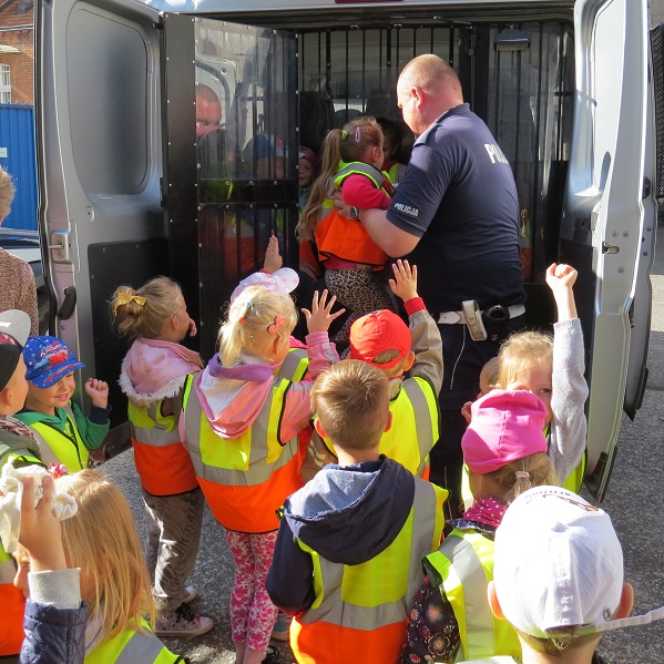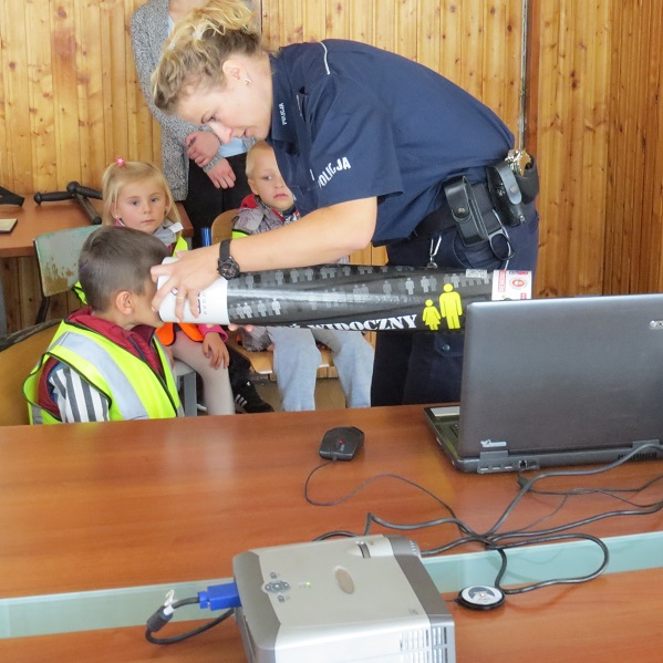 Komendę policji odwiedziły najmłodsze dzieci jednego z tucholskich przedszkoli. Małymi gośćmi zajęli się policjant ruchu drogowego mł.asp. Daniel Kania i funkcjonariuszka od spraw nieletnich sierż. szt. Justyna Janiak. Funkcjonariusze pokazali dzieciom sprzęt jaki policjanci używają podczas codziennych służb. Dzieci zobaczyły z bliska policyjne samochody. Same mogły wejść do środka i uruchomić sygnały dźwiękowe. Wszystkie, chociaż przez chwilę, chciały posiedzieć w miejscu, które służy do przewozu „złych ludzi”. Mali goście złożyli także wizytę naszym pieskom, po czym zobaczyli w jakich pomieszczeniach zatrzymywani są rabusie. Podczas spotkania dzieci obejrzały film z sympatycznym SpongeBobem, który przypomniał maluchom jak bezpiecznie zachowywać się na drodze.